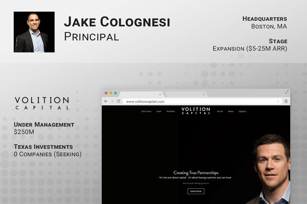Description: Volition Capital, a growth equity firm that focuses on founder owned companies in the technology sector and holds true to just that. With 75 years of collective investing experience and assets invested in a portfolio made up of 22 companies that are approximately worth $300 million, Volition Capital proves to be not only your investors, but a reliable partner. They truly help founders obtain growth for their companies and also aims to maintain the original vision the founder(s) had. Volition Capital does so with a tool belt that contains one of there most robust tools they call ‘Capital +.’ This tool is an aggregate of their knowledge and resources which is well equipped to make them the ‘Batman’ of growth equity firms.